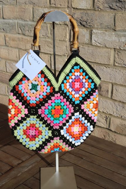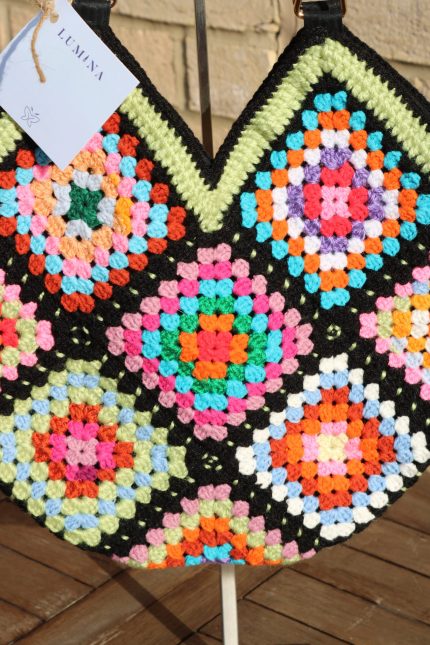 Handmade Crochet Granny Square Bag – Mosaic Sunset | Lumina Design London