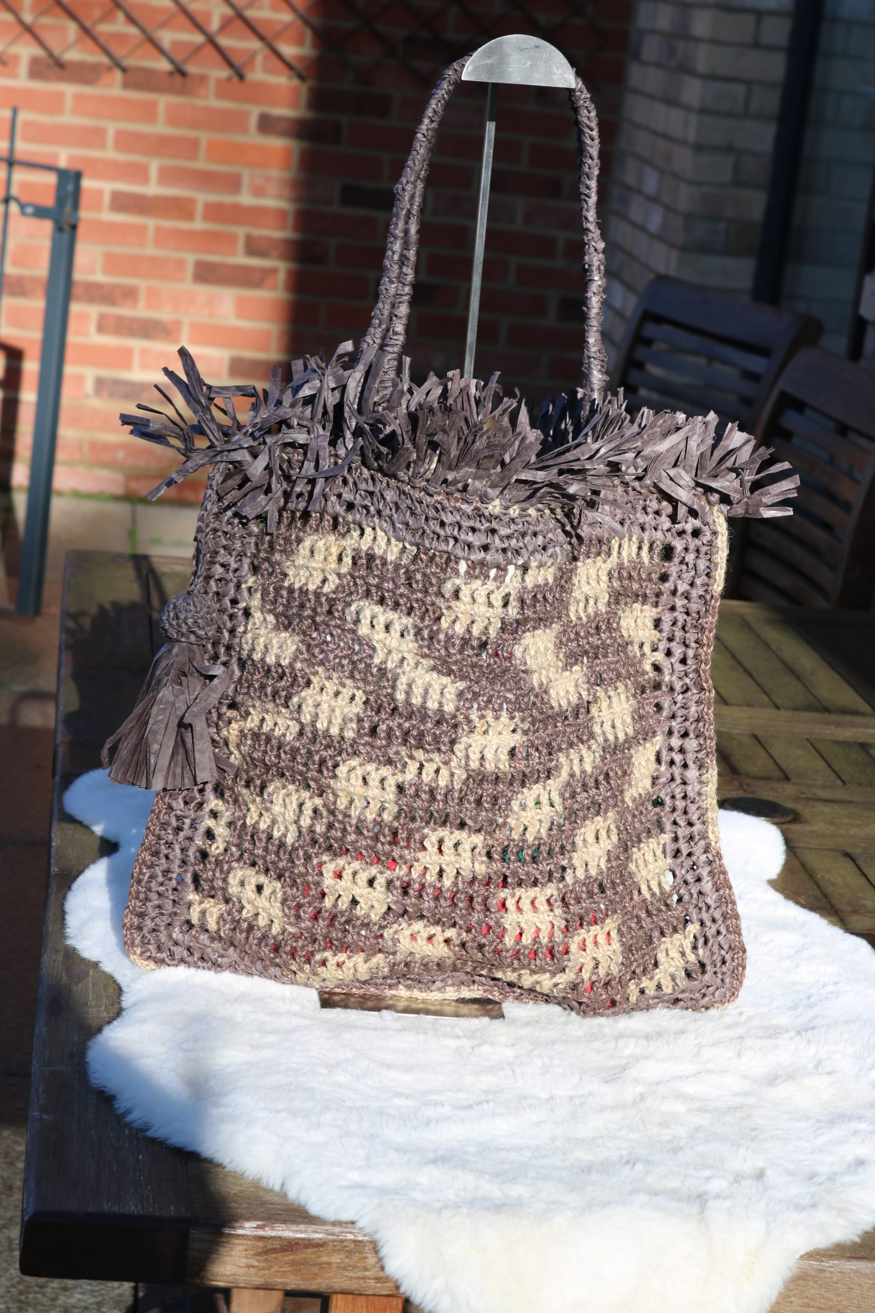 Handmade Raffia Crochet Tote Bag with Fringe – Boho Summer Shoulder Bag | Lumina Design London
